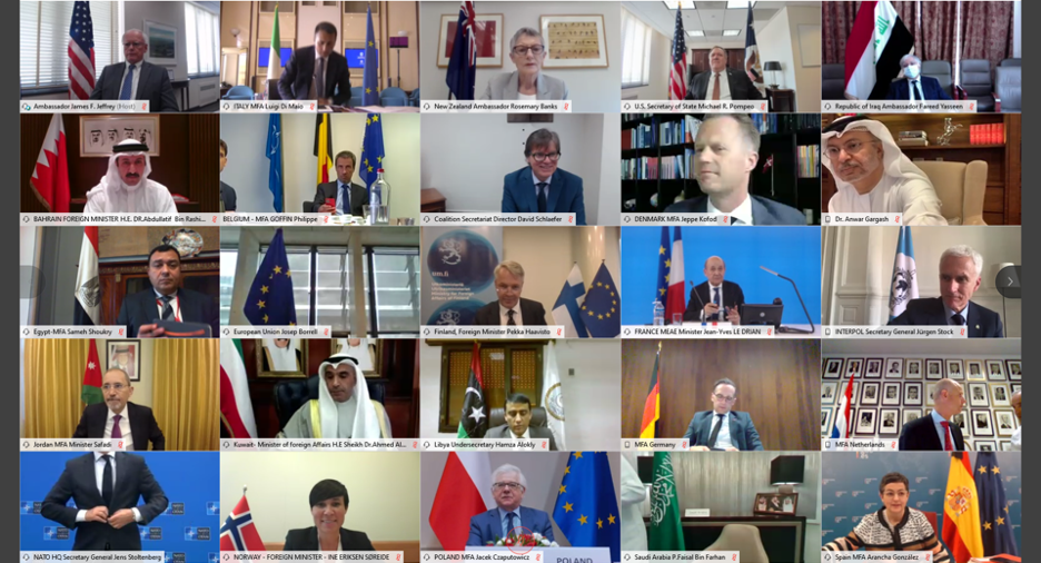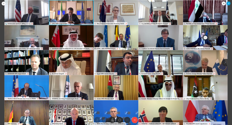 At the invitation of Italian Minister of Foreign Affairs Luigi Di Maio and U.S. Secretary of State Michael R. Pompeo, the Foreign Ministers of the Global Coalition to Defeat Daesh/ISIS Small Group met virtually on Thursday 4 June to reaffirm our shared determination to continue the fight against Daesh/ISIS in Iraq and Syria, and to create conditions for an enduring defeat of the terrorist group, which remains the Coalition’s sole purpose, through a comprehensive, multifaceted effort.